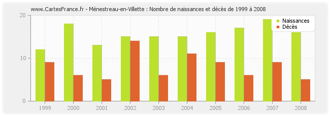 - Ménestreau-en-Villette en 2008 : 16 naissances et 5 décès