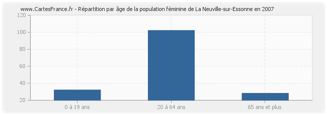 - Femmes de 20 à 64 ans habitant La Neuville-sur-Essonne : 102