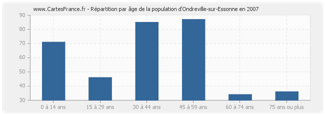 - Population d'Ondreville-sur-Essonne de 30 à 44 ans : 85 habitants