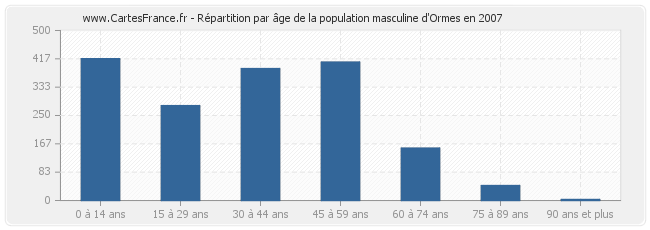 - Hommes de 0 à 14 ans habitant Ormes : 417