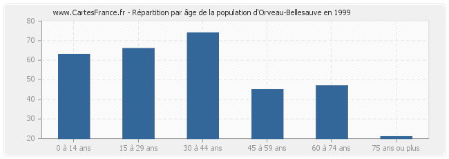 - Population d'Orveau-Bellesauve de 15 à 29 ans : 66 habitants