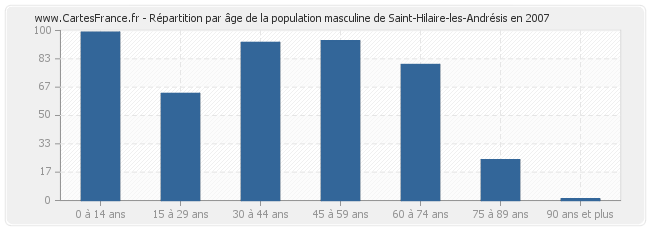 Répartition de la population masculine de Saint-Hilaire-les-Andrésis par âge en 2007 :