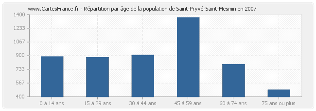 - Population de Saint-Pryvé-Saint-Mesmin de 45 à 59 ans : 1 364 habitants