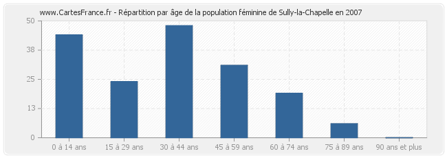 Répartition de la population féminine de Sully-la-Chapelle par âge en 2007 :