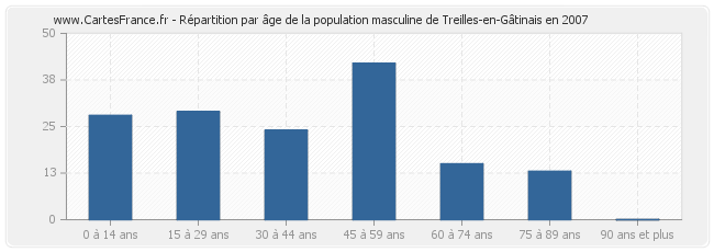 - Hommes de 45 à 59 ans habitant Treilles-en-Gâtinais : 42