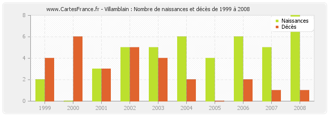 - Villamblain en 2008 : 8 naissances et 1 décès