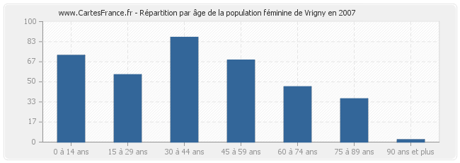 Répartition de la population féminine de Vrigny par âge en 2007 :