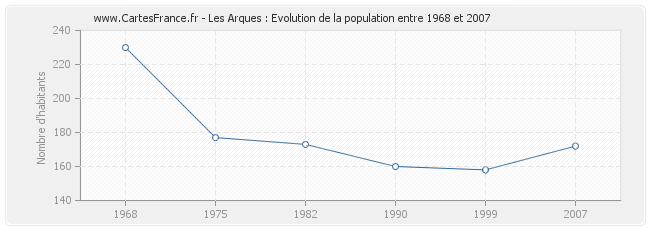 La population de Les Arques était de 172 habitants en 2007, 158 habitants en 1999, 160 habitants en 1990, 173 habitants en 1982, 177 habitants en 1975 et 230 habitants en 1968.