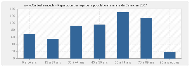 Répartition de la population féminine de Cajarc par âge en 2007 :