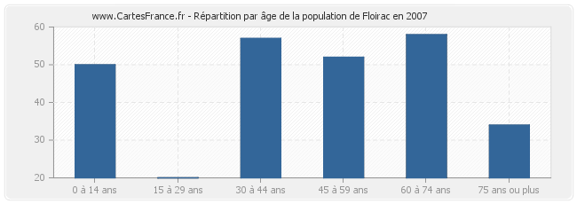 - Population de Floirac de 45 à 59 ans : 52 habitants