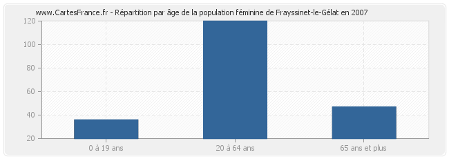Répartition de la population féminine de Frayssinet-le-Gélat par âge en 2007 :
