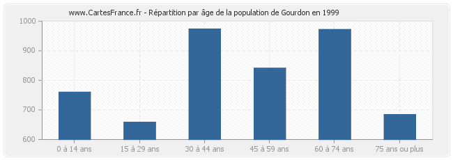 Répartition de la population de Gourdon par âge en 1999 :