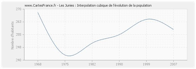 Cette courbe reprend l'historique de la population de Les Junies de 1968 à 2007 en interpolation cubique. Ceci permet d'obtenir plus précisément la population de la commune de Les Junies les années ou aucun recensement n'a été effectué.