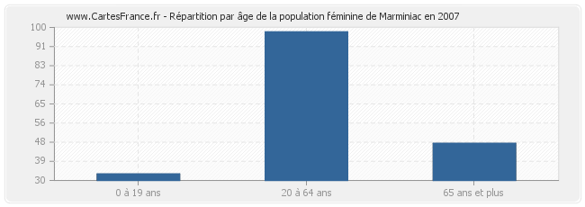 - Femmes de 20 à 64 ans habitant Marminiac : 98