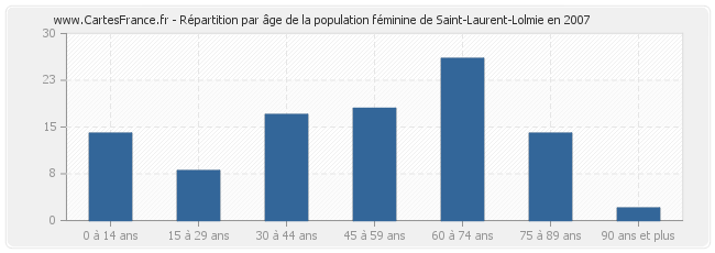 - Femmes de 60 à 74 ans habitant Saint-Laurent-Lolmie : 26