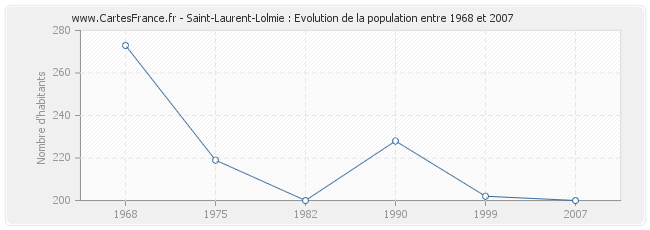 - Population de Saint-Laurent-Lolmie en 2007 : 200 habitants