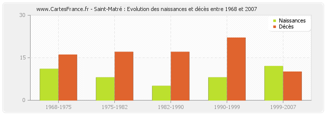 Saint-Matré : évolution des naissances et décès de 1968 à 2007