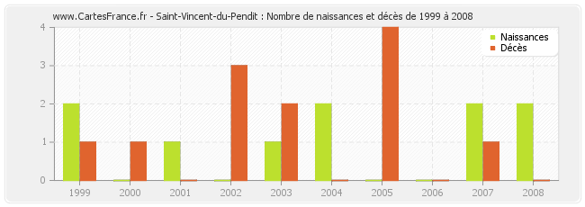 Saint-Vincent-du-Pendit : naissances et décès de 1999 à 2008