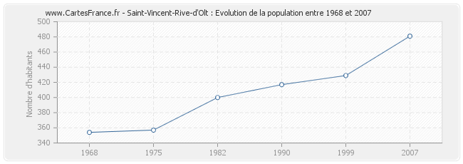 - Population de Saint-Vincent-Rive-d'Olt en 2007 : 481 habitants