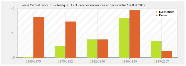Villesèque : évolution des naissances et décès de 1968 à 2007