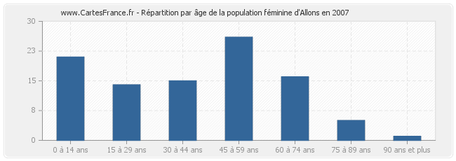 Répartition de la population féminine d'Allons par âge en 2007 :
