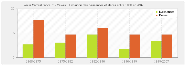 Cavarc : évolution des naissances et décès de 1968 à 2007
