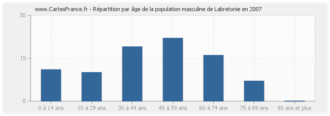 Répartition de la population masculine de Labretonie par âge en 2007 :