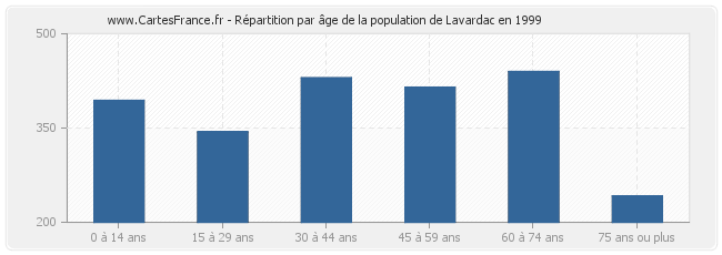 - Population de Lavardac de 75 ans ou plus : 338 habitants