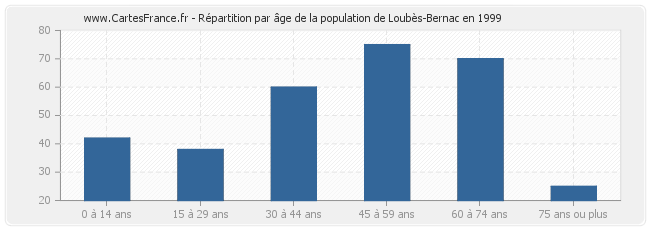 - Population de Loubès-Bernac de 45 à 59 ans : 75 habitants