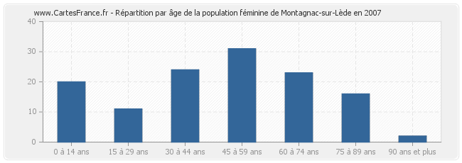 - Femmes de 45 à 59 ans habitant Montagnac-sur-Lède : 31