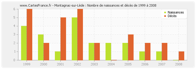Montagnac-sur-Lède : naissances et décès de 1999 à 2008