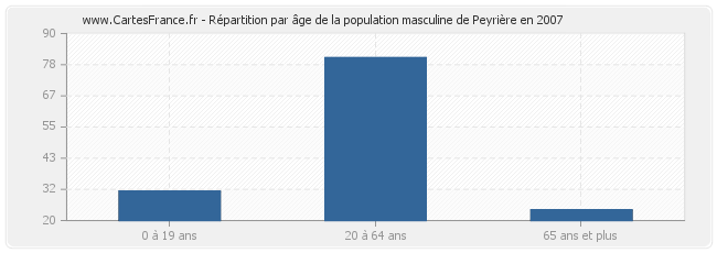 - Hommes de 20 à 64 ans habitant Peyrière : 81