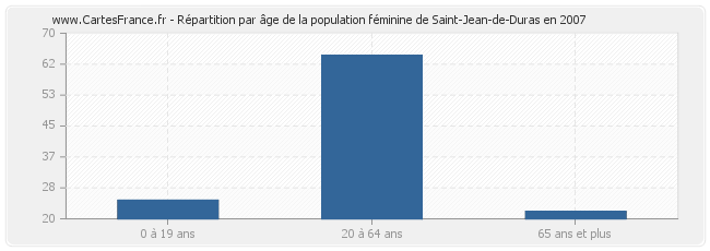 Répartition de la population féminine de Saint-Jean-de-Duras par âge en 2007 :
