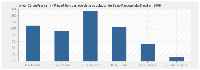 - Population de Saint-Pardoux-du-Breuil de 30 à 44 ans : 154 habitants