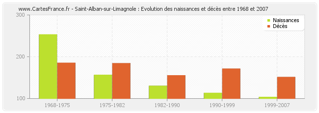 Saint-Alban-sur-Limagnole : évolution des naissances et décès de 1968 à 2007
