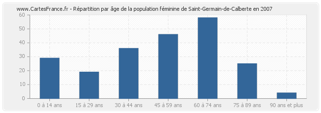 Répartition de la population féminine de Saint-Germain-de-Calberte par âge en 2007 :