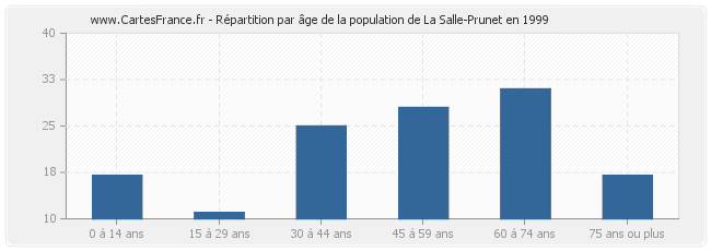 - Population de La Salle-Prunet de 75 ans ou plus : 17 habitants