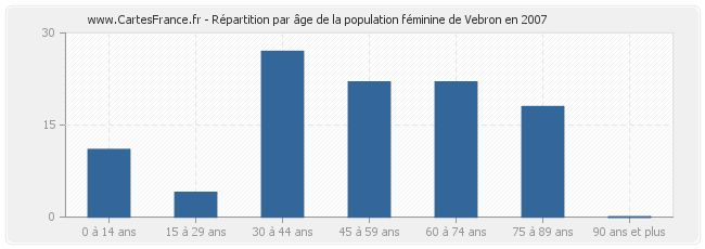 - Femmes de 30 à 44 ans habitant Vebron : 27