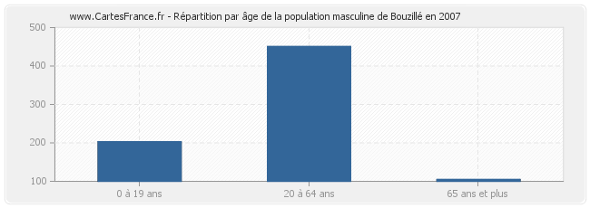 Répartition de la population masculine de Bouzillé par âge en 2007 :
