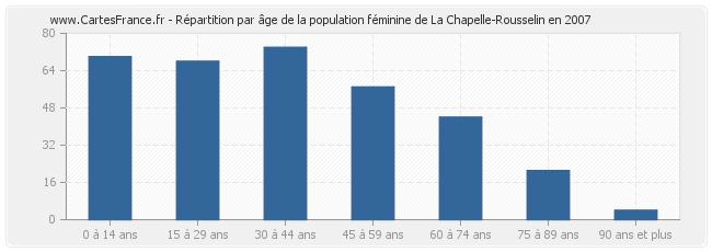 Répartition de la population féminine de La Chapelle-Rousselin par âge en 2007 :