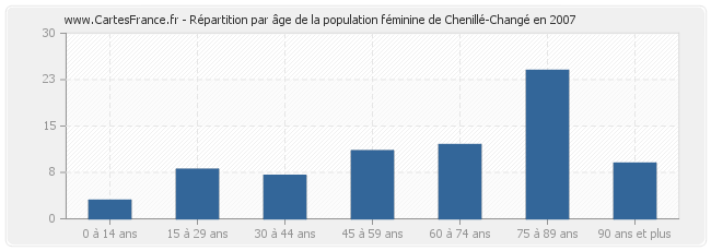 Répartition de la population féminine de Chenillé-Changé par âge en 2007 :