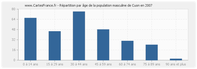 - Hommes de 0 à 14 ans habitant Cuon : 66