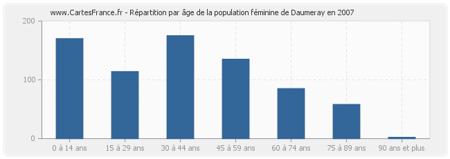 Répartition de la population féminine de Daumeray par âge en 2007 :