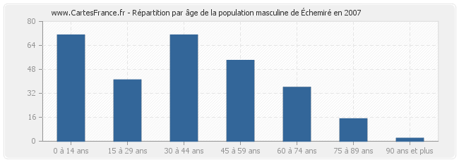 - Hommes de 0 à 14 ans habitant Échemiré : 71