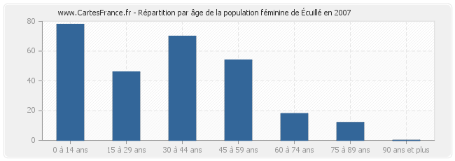 - Femmes de 0 à 14 ans habitant Écuillé : 78