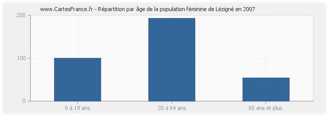 Répartition de la population féminine de Lézigné par âge en 2007 :