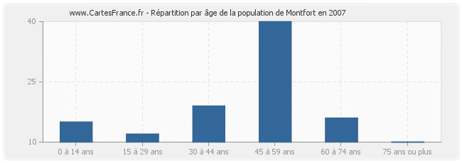- Population de Montfort de 45 à 59 ans : 40 habitants