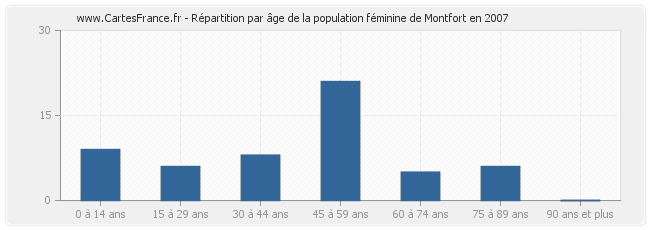 Répartition de la population féminine de Montfort par âge en 2007 :