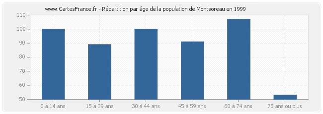 - Population de Montsoreau de 60 à 74 ans : 107 habitants