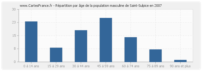 Répartition de la population masculine de Saint-Sulpice par âge en 2007 :